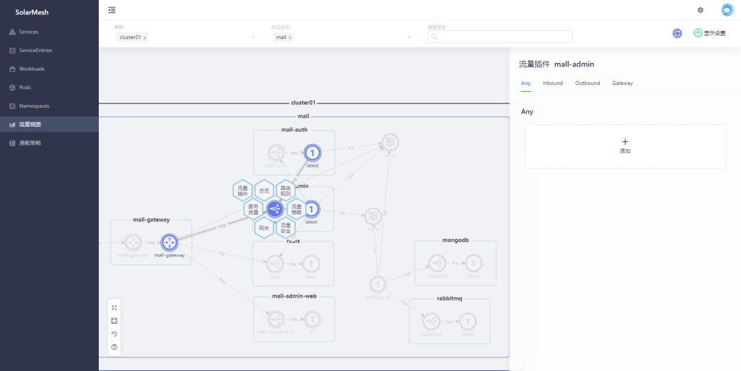 访问SolarMesh的流量视图页面,查看整个项目的流量拓扑。