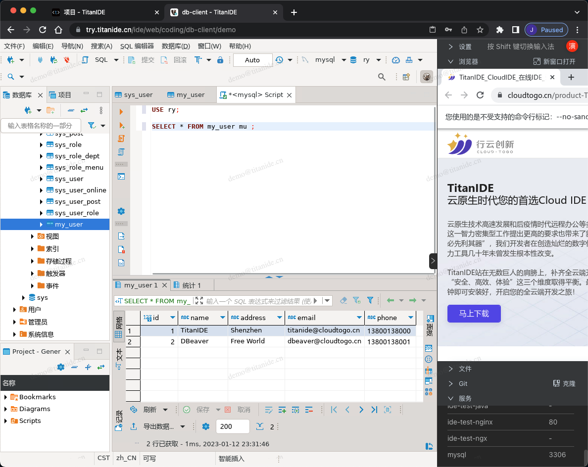 最近,我在使用 TitanIDE 开发云原生应用的时候,需要一个客户端操作数据库,我们一般都会在自己的电脑安装 NaviCat、Workbench、DBeaver 等数据库客户端工具。这些工具都挺好用的。不过呢,NaviCat 想说爱你不容易,虽然MySQL Workbench 是免费的,但是仅支持 MySQL。最后找到了 DBeaver,发现 DBeaver 通过 JDBC 连接到数据库,可以支持几乎所有的数据库产品,还开源、免费。但问题是,TitanIDE 是运行在云端,通过浏览器来访问的,而以上工具皆运行在本地桌面操作系统内部,一个在云端,一个在本地,TitanIDE 和 DBeaver 是怎么坠入爱河的呢?且听我娓娓道来......
