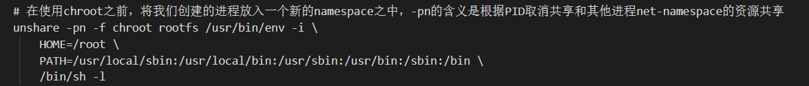 我们将用 unshare 为我们的进程创建一个新的 namespace,并和宿主机的资源隔离。